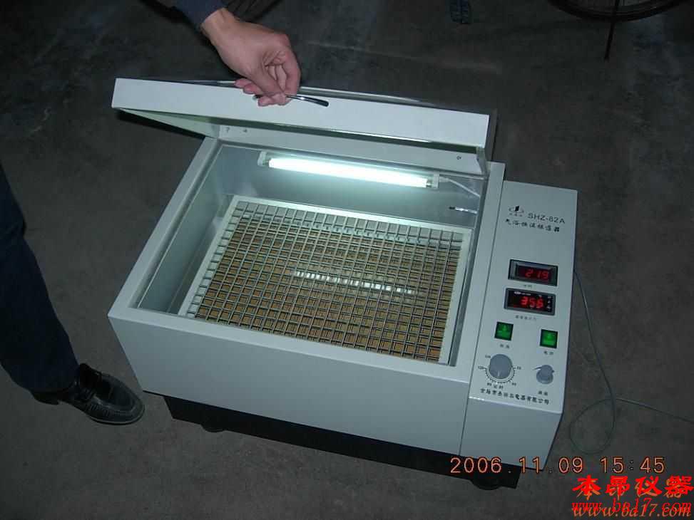 SHZ-82數(shù)顯氣浴恒溫振蕩器:溫控精確數(shù)字顯示。開(kāi)設(shè)有補(bǔ)氧孔,恒溫工作腔補(bǔ)氧充分