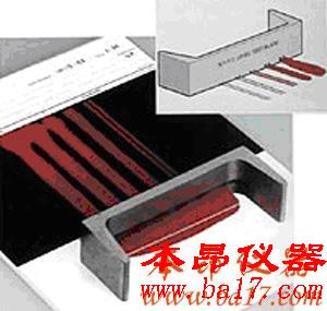 用測(cè)試器將被試驗(yàn)的油漆涂于平整的底材(測(cè)試卡紙)上,產(chǎn)生5對(duì)各種涂膜厚度的條紋
